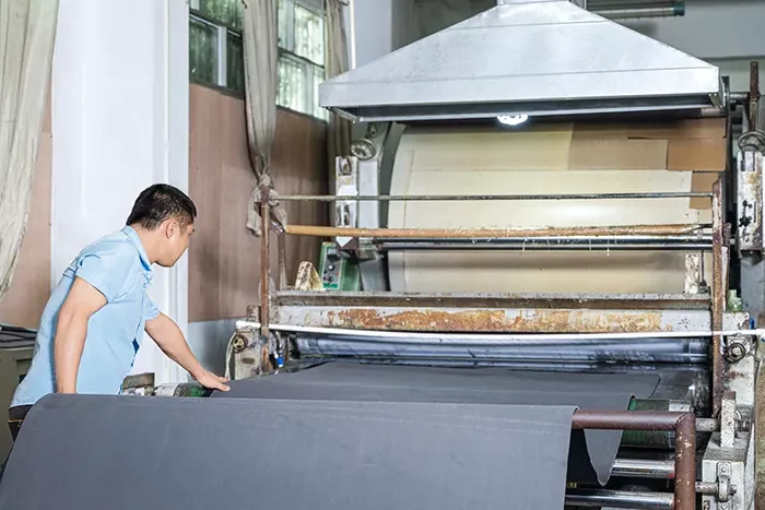 - Workers laminate EVA sheets with both the exterior fabric and interior lining using low-VOC, eco-friendly adhesives.