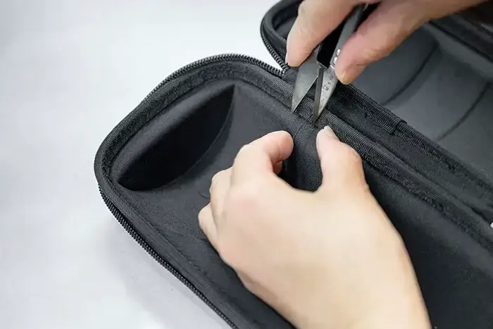 Untuk memastikan cengkeraman yang aman pada case pembawa EVA, Berbagai bahan seperti kulit, TPU, nilon, dan lebih banyak lagi dapat digunakan untuk pegangan dan tali.