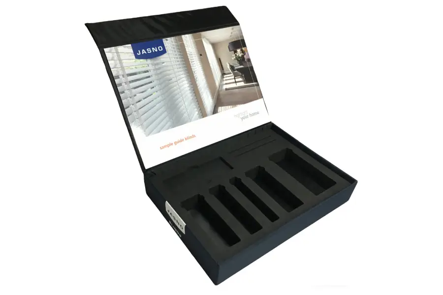 リングバインダーと木製ブラインドサンプルを備えた平らな段ボールを保持するには、わずかに剛性のあるインサートが必要です.